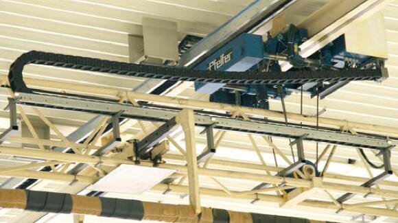 預應力指的是拖鏈運行時上部的上拱度。所有易格斯拖鏈都帶有預應力,無預應力的產品可按要求提供。預應力可以延長使用壽命,增加架空長度。在所有拖鏈的安裝尺寸描述中你都可以找到一個 HF 值。這就是在考慮預應力的情況下實際安裝高度。但空間受限時,我們可以按要求提供無預應力的拖鏈。但這類產品的承載力也與標準產品不同。