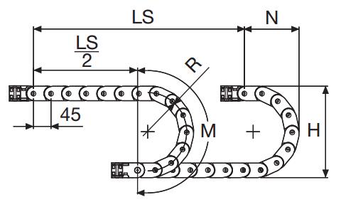 內部高 (D) 25 mm,尼龍拖鏈帶有大的中心抗磨銷軸的單鏈節結構,同樣抗扭抗拉。可以提供垂直的分隔片。如果使用導向槽,這種拖鏈特別適合長行程應用。
